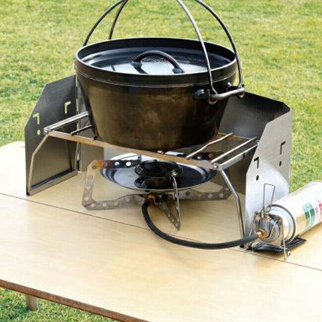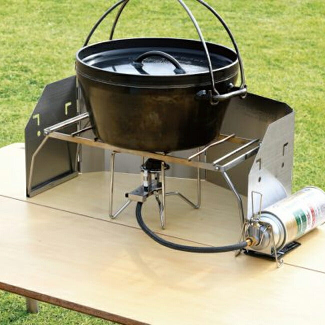 クッカースタンド350にジャストフィットの防風板 ※風よけのためであっても、ガス器具及びボンベ全体を囲み、ボンベが過熱するような使用をしないでください。 ガス器具及びボンベ全体を囲んで使用すると、ボンベが過熱し爆発等のおそれがあります。 【材質】 ステンレス鋼 【重量】 約948g |