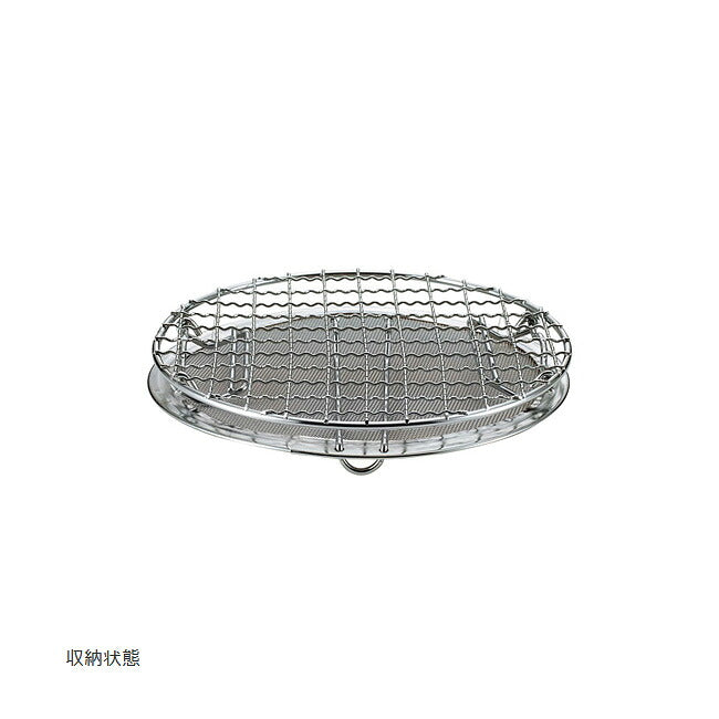 クッカーに収納できる小型のロースター 上部(網部)と下部(メッシュ部)は取り外しできるので用途により使い分けることができます。 【材質】 上網:鉄・クロームメッキ 下網:特殊耐熱鋼FCHW2 【重量】 約135g ※パンやモチなどの乾き物を焼く商品です。 汁等の汚れがメッシュに付着したまま使用を続けると劣化し、穴があく場合があります。 また、輻射熱で、器具、点火器等を損傷する場合があります。 弱火でお使いください。 ※アルコールバーナーにはお使いいただけません。 不完全燃焼を起こします。 |