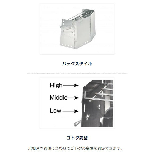 焚き火や炭火での調理も楽しめるステンレス製かまど 大きな薪もそのまま使えるラージサイズ。 ダッチオーブン10インチとスキレットを一緒に載せられる余裕のサイズ。 【材質】 ステンレス鋼 【重量】 約5.9kg 【分散耐荷重】 約20kg 【セット内容】 収納ケース |