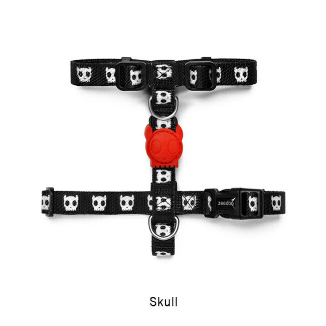 柔らかく耐久性のあるzee.dogのHハーネスは、ゴム製のスカルエンブレムが特徴です。